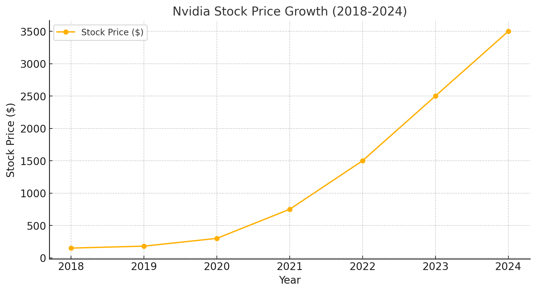 Depuis sa fondation en 1993, Nvidia s’est imposée comme un acteur incontournable de la technologie, notamment grâce à ses GPU (processeurs graphiques) de pointe. Mais c’est au cours des dernières années que l’entreprise a véritablement explosé en bourse, avec une progression spectaculaire de son action, qui dépasse aujourd’hui les 3 500 dollars, contre seulement 150 dollars en 2018. Cette croissance exceptionnelle est étroitement liée à l’essor de l’intelligence artificielle (IA), une révolution technologique dont Nvidia est l’un des piliers centraux.